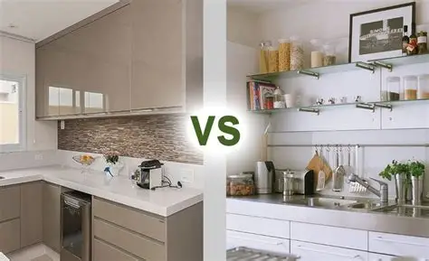 • Design Aesthetics: Think about the overall look and feel you want to achieve in your kitchen. Open shelving can create a more airy and spacious atmosphere, while cabinets offer a more streamlined and polished appearance.